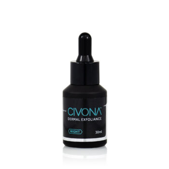 CIVONA’s Dermal Exfoliance contains naturally derived botanical acids (AHA and BHA) to; increase skin cell turnover, clear blocked pores, decrease pore size and illuminate the skin resulting in a more radiant look and feel.